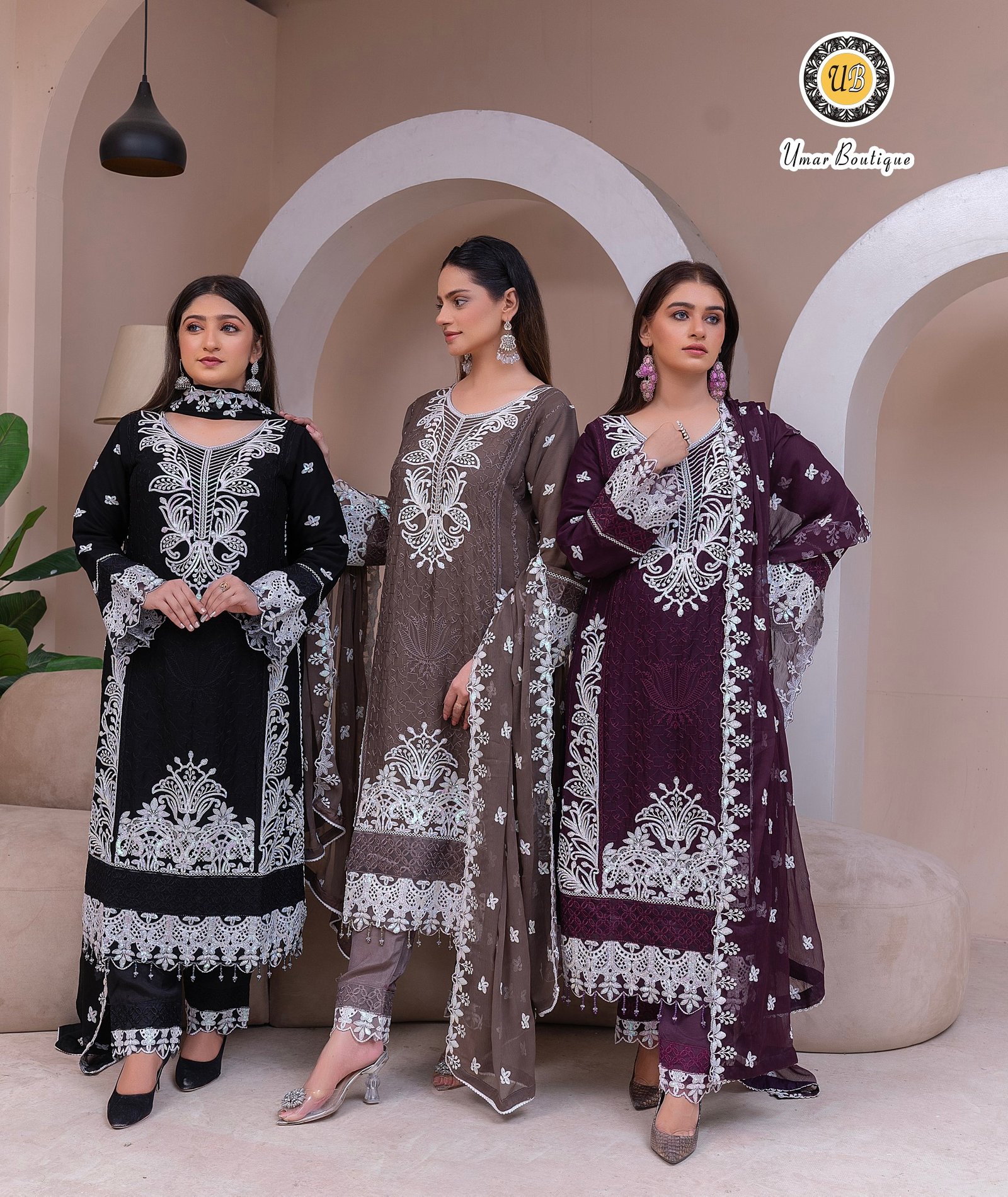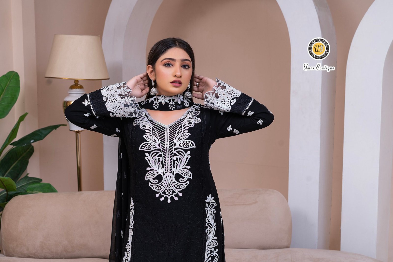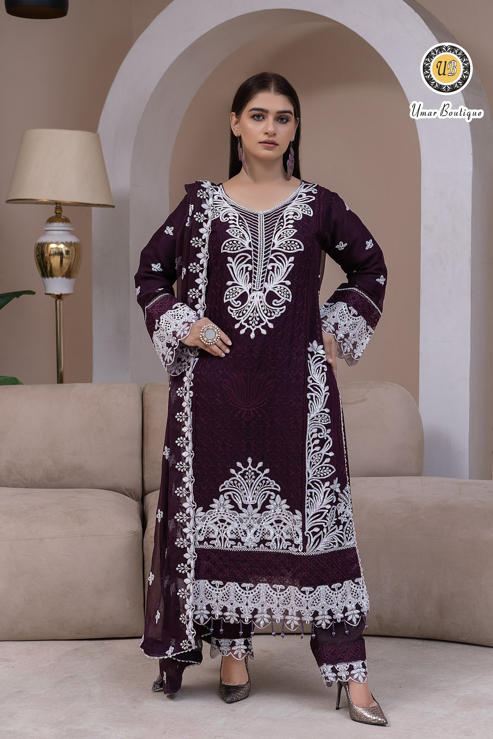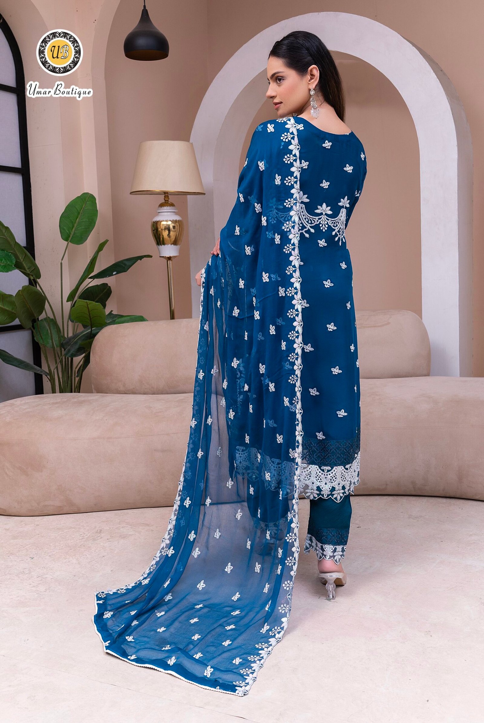 Work : embroidered Chiffon body with stone work front panel sequence work