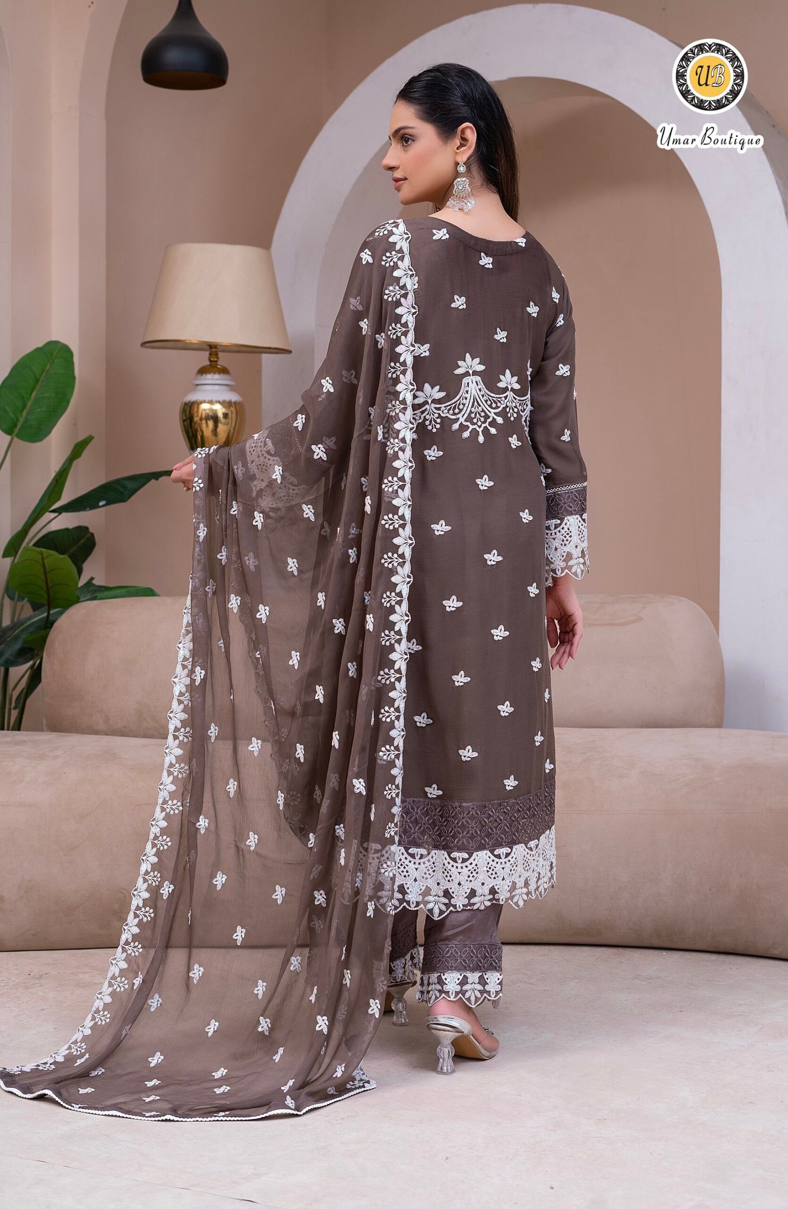 This lovely angrakha style outfit sounds very beautiful and traditional, it is created using handcrafted resham & tilla work the finest embroidered border on the sleeves and daman. A handmade dori tassel on the front of the shirt a unique and charming touch. Intimate events this season call for the pairing of this timeless shirt with a crap bottom and chiffon dupatta with kiran lace border. This epitome of real pulchritude would provide with rich appeal in the event.