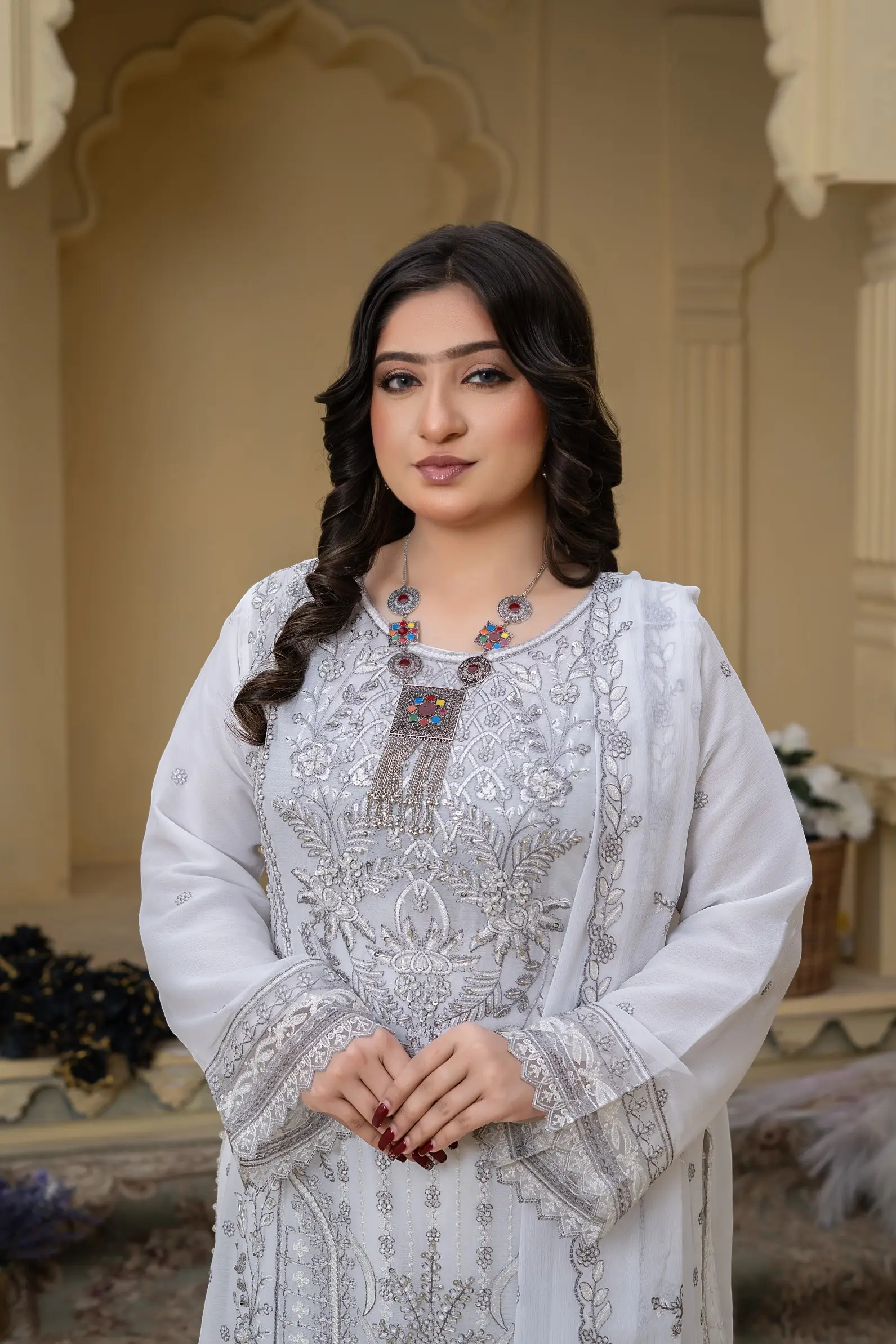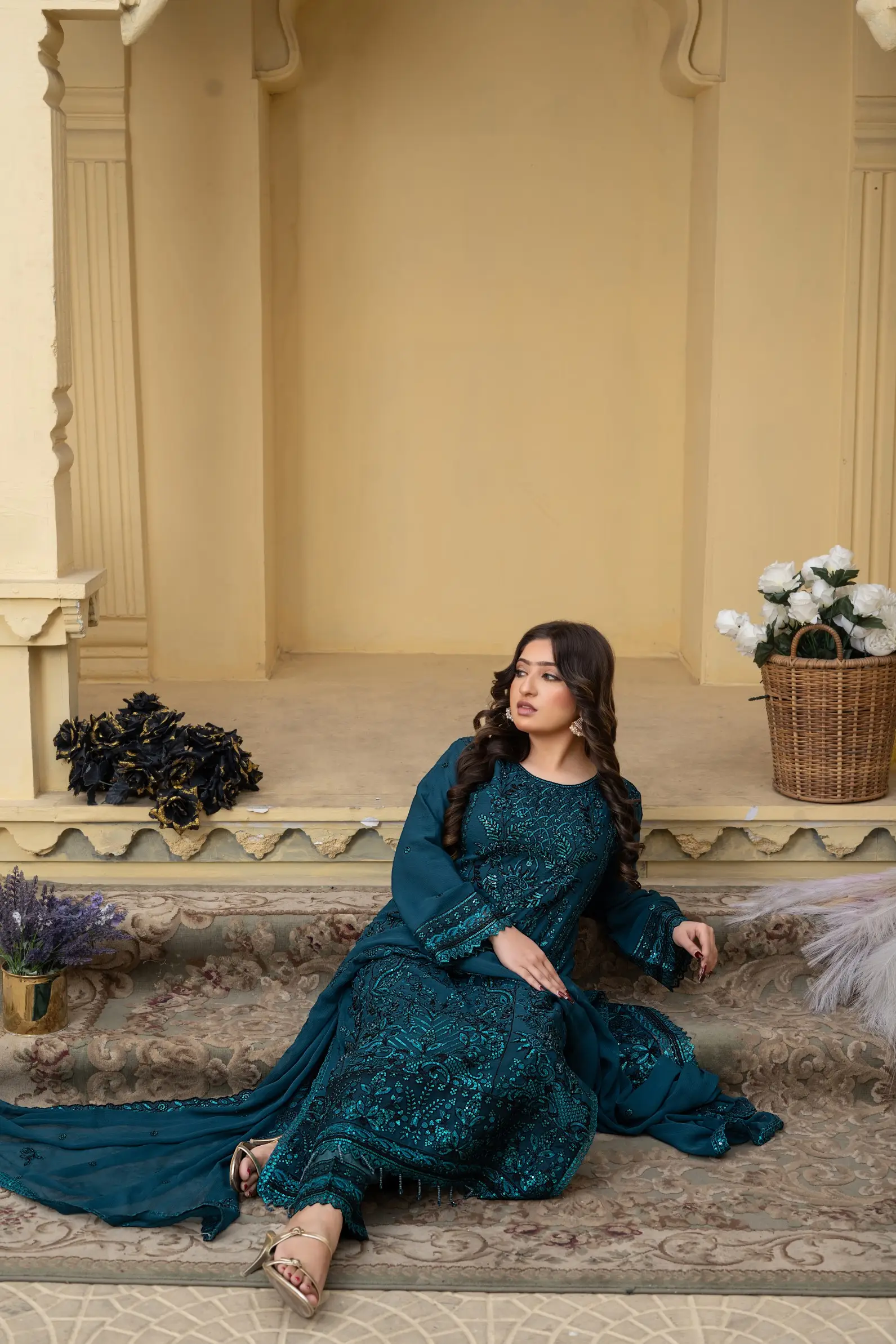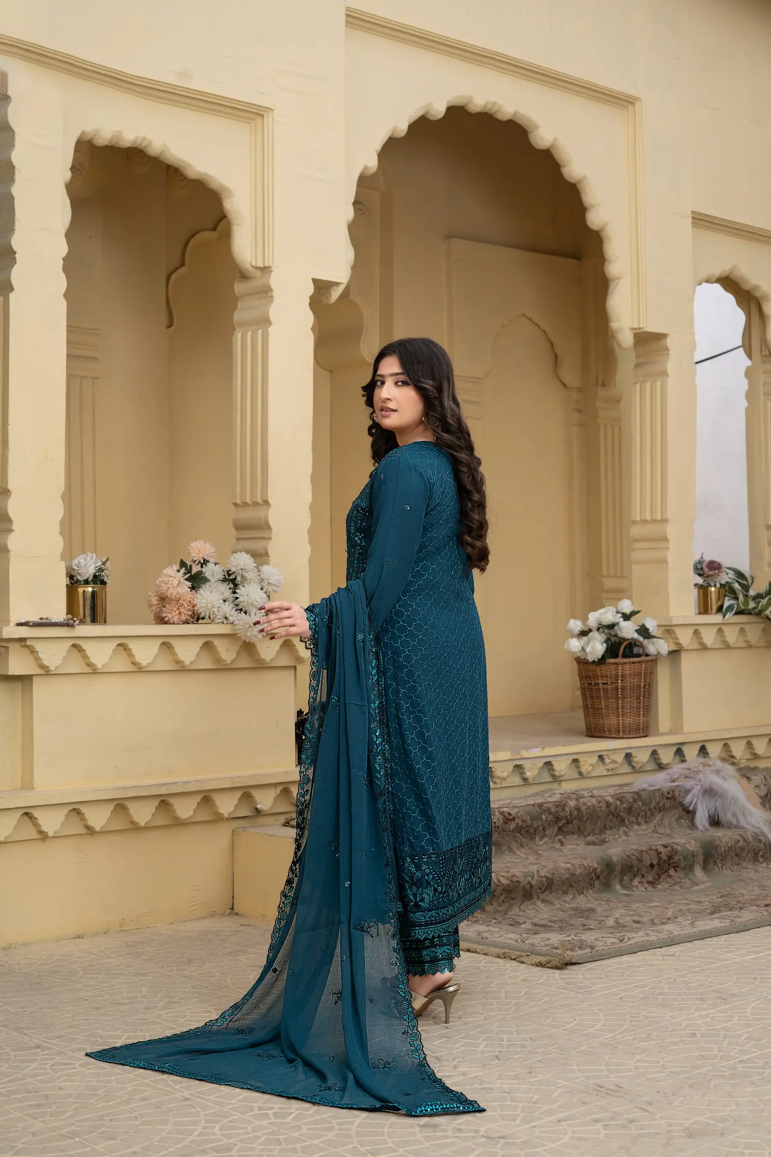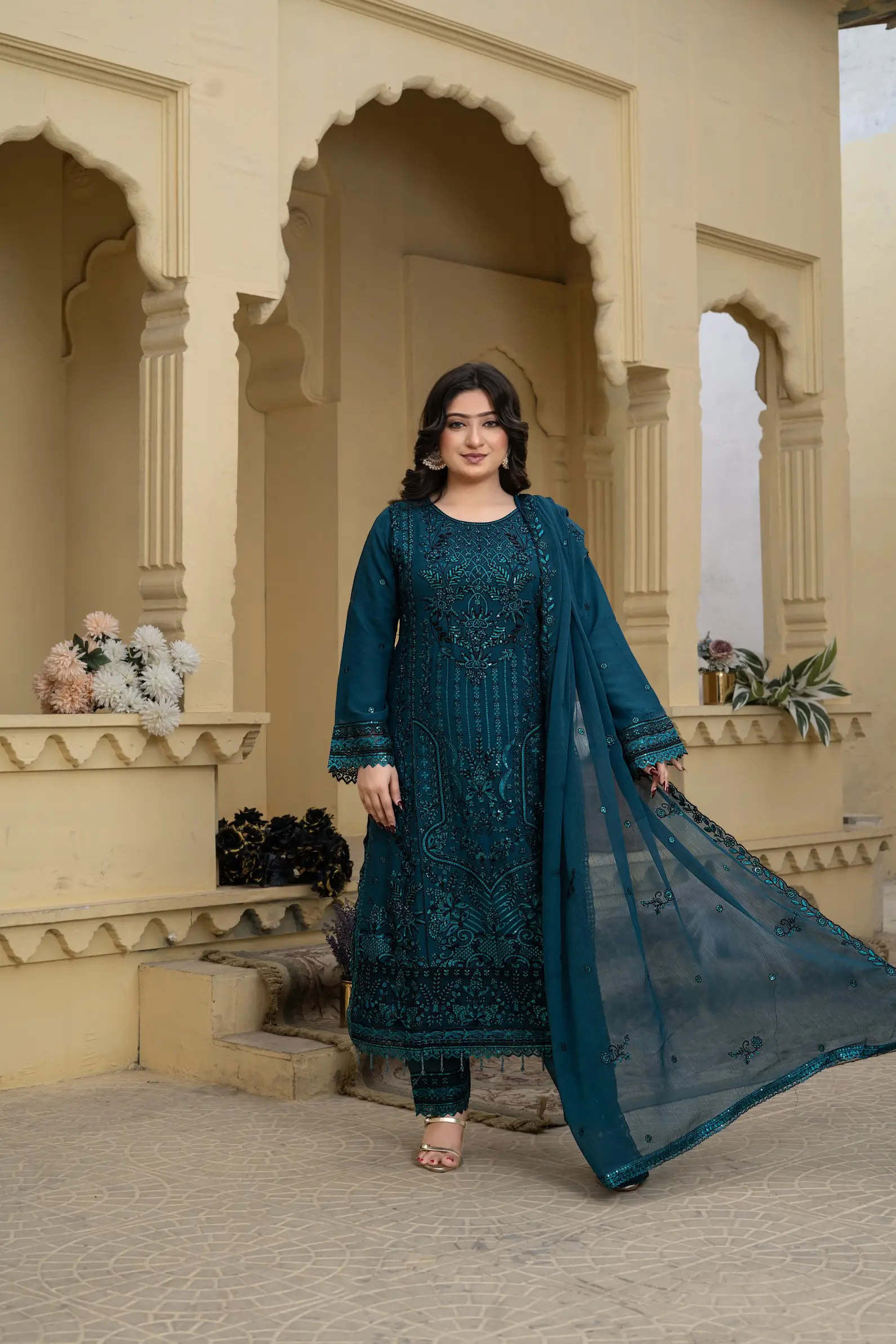 Design S-348 by Umar Boutique is a sophisticated ready-to-wear women’s suit, crafted for elegance, comfort, and premium appeal.