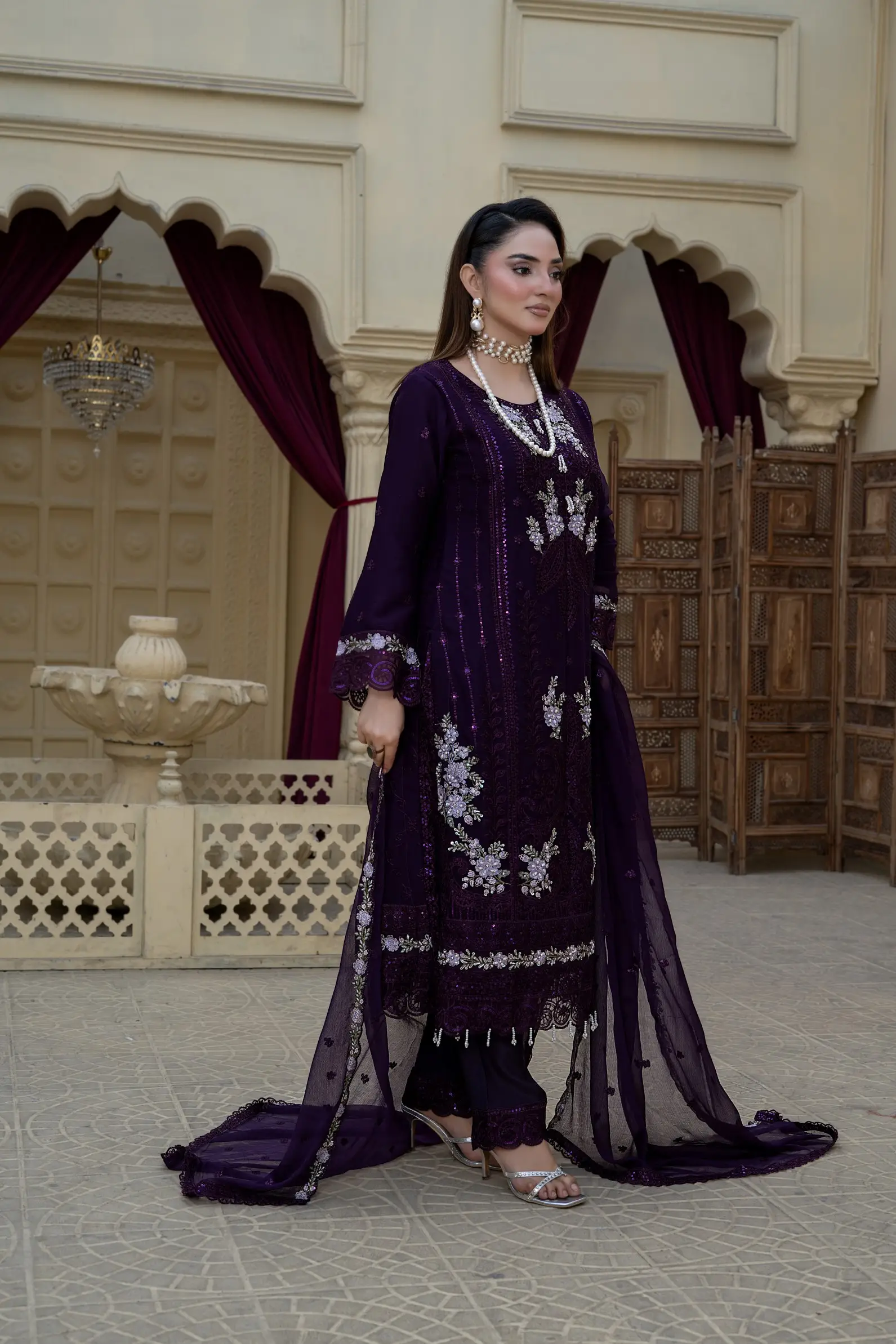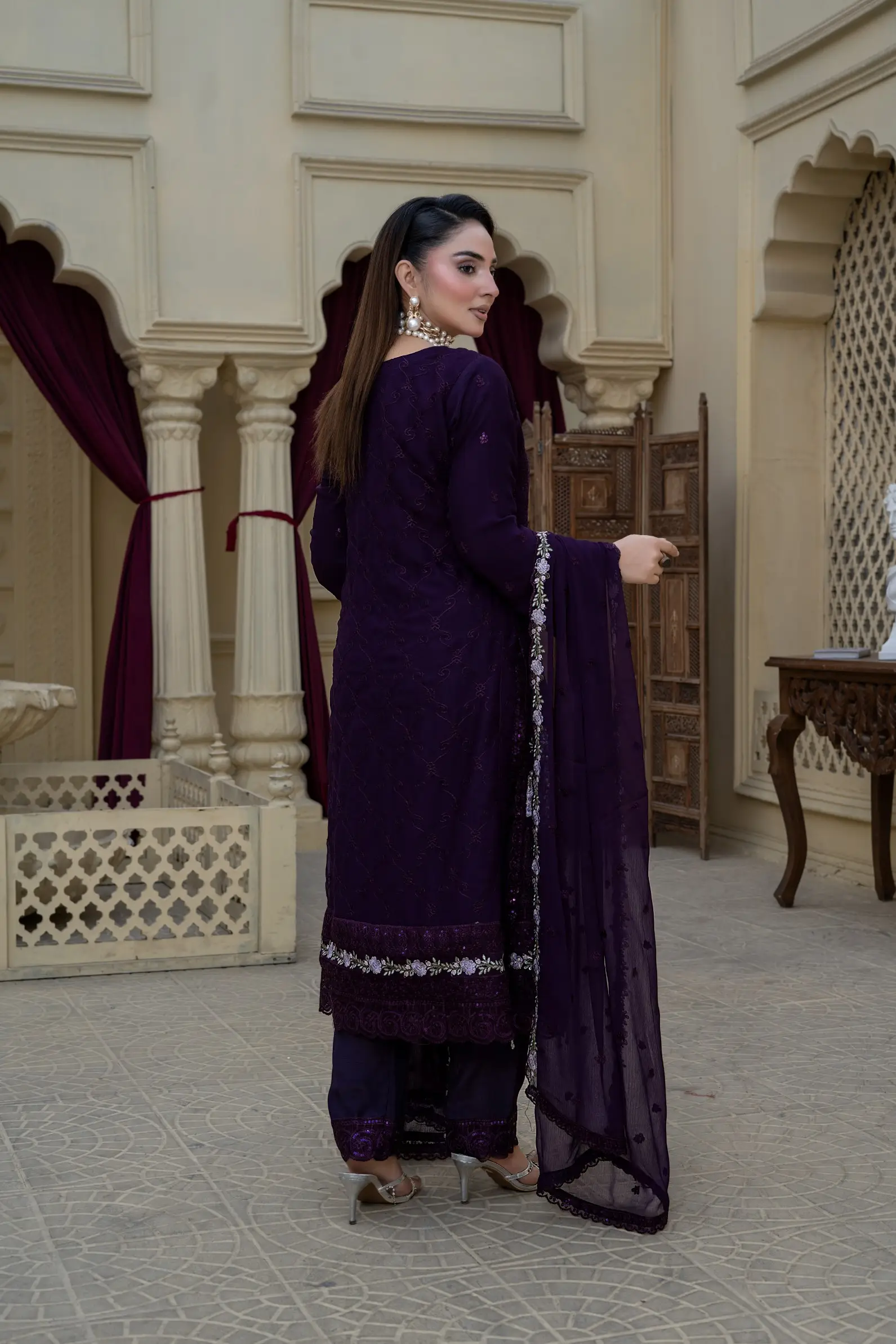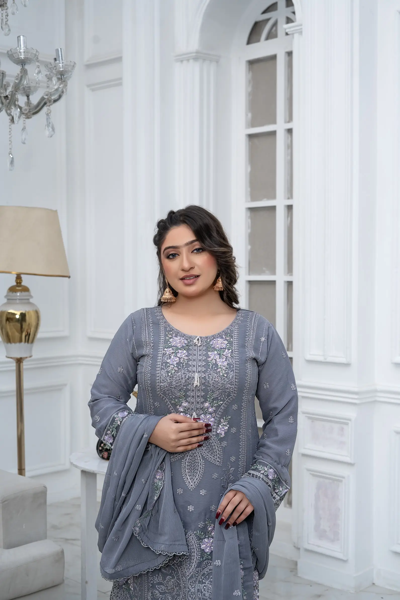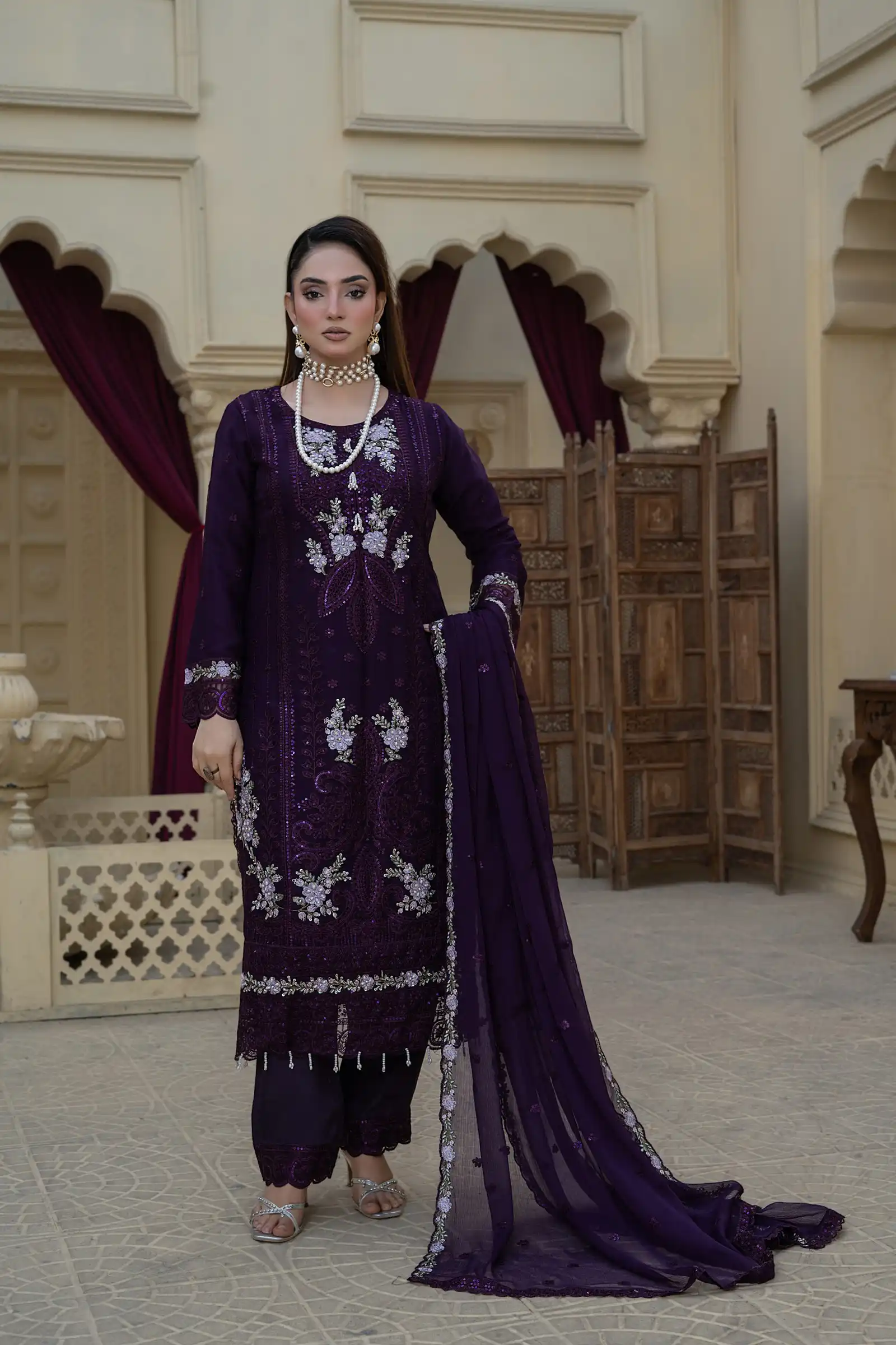Design S-370 is a refined women-only shafoon suit featuring a soft flow, graceful drape, and premium stitching—perfect for elegant everyday wear and boutique displays.