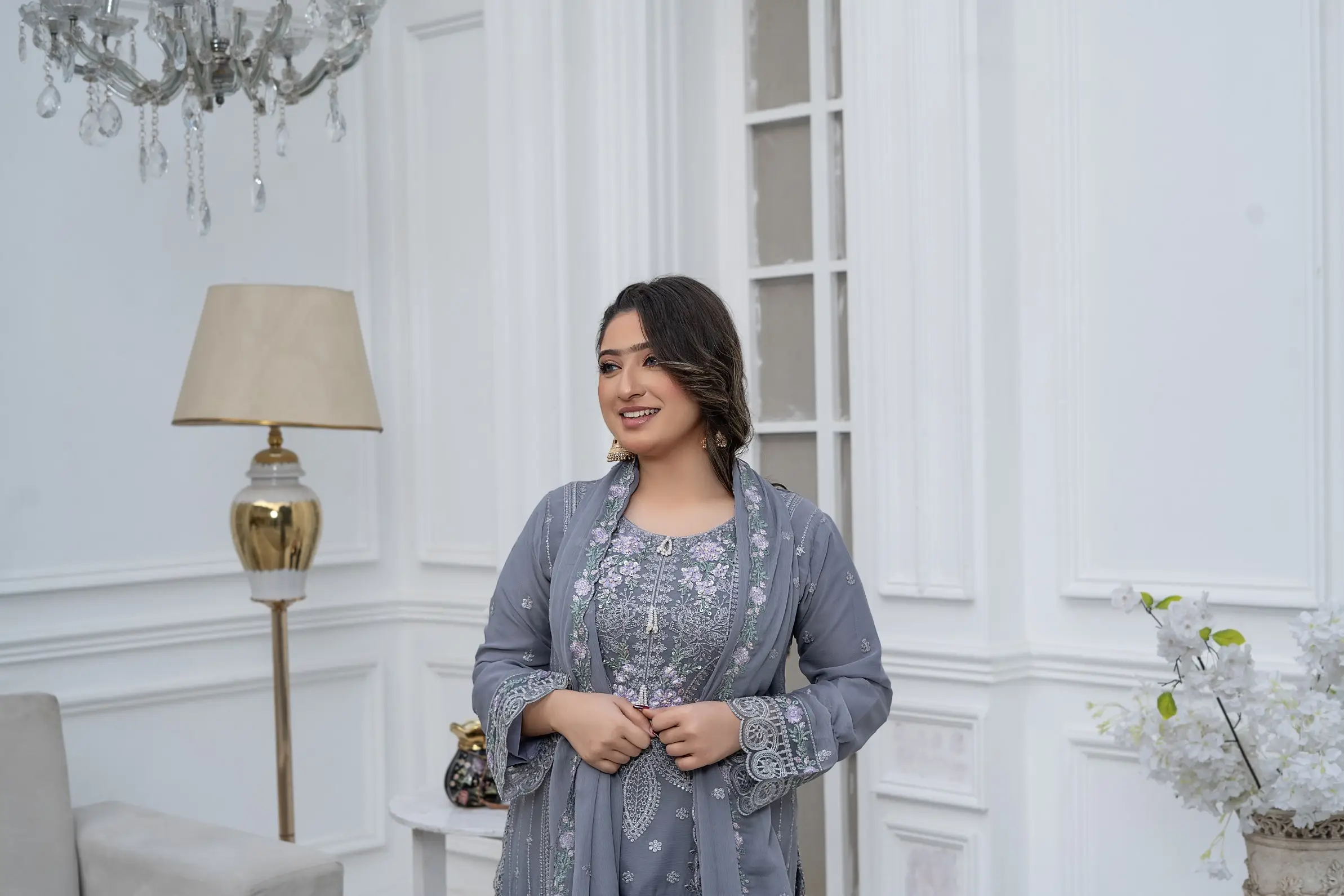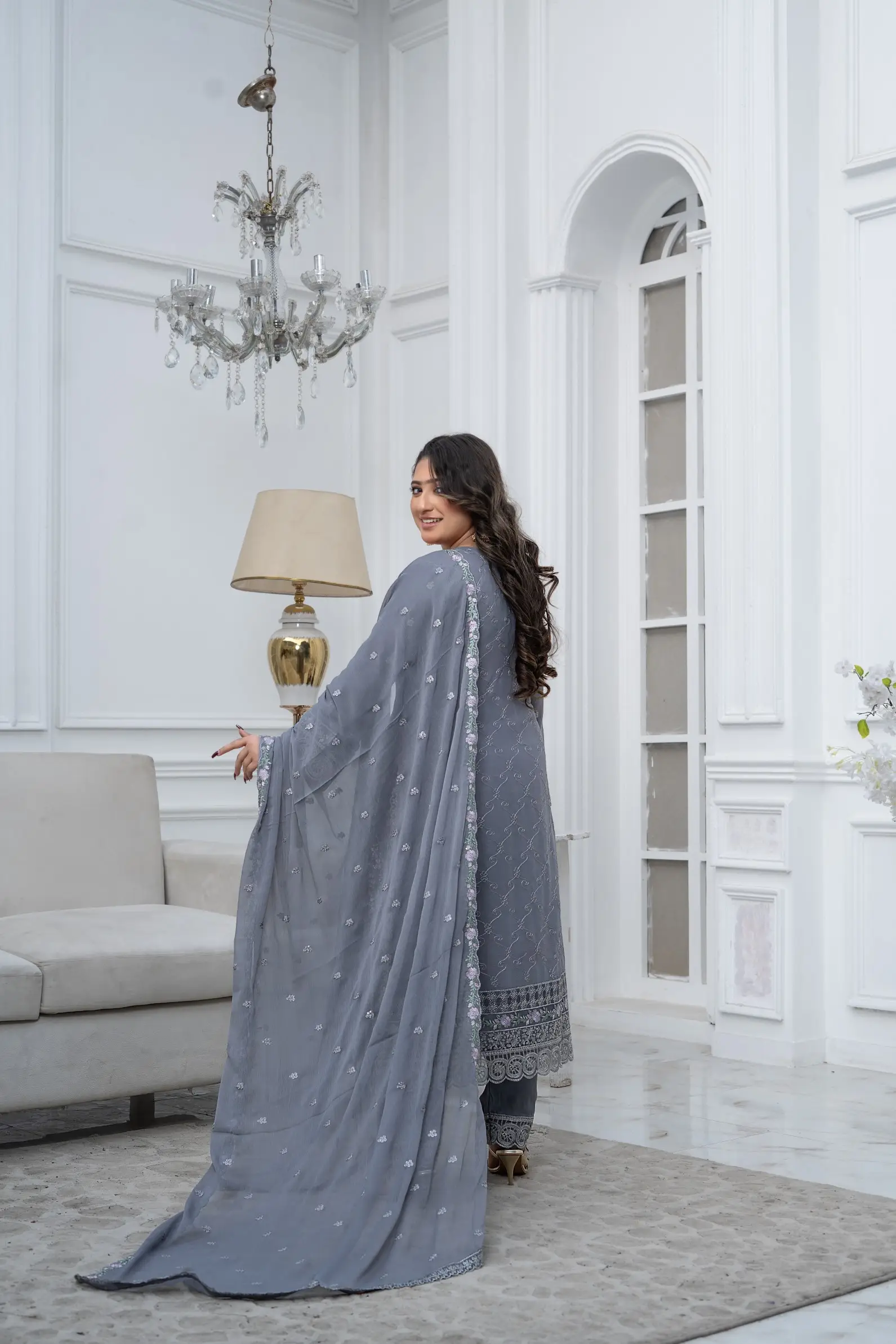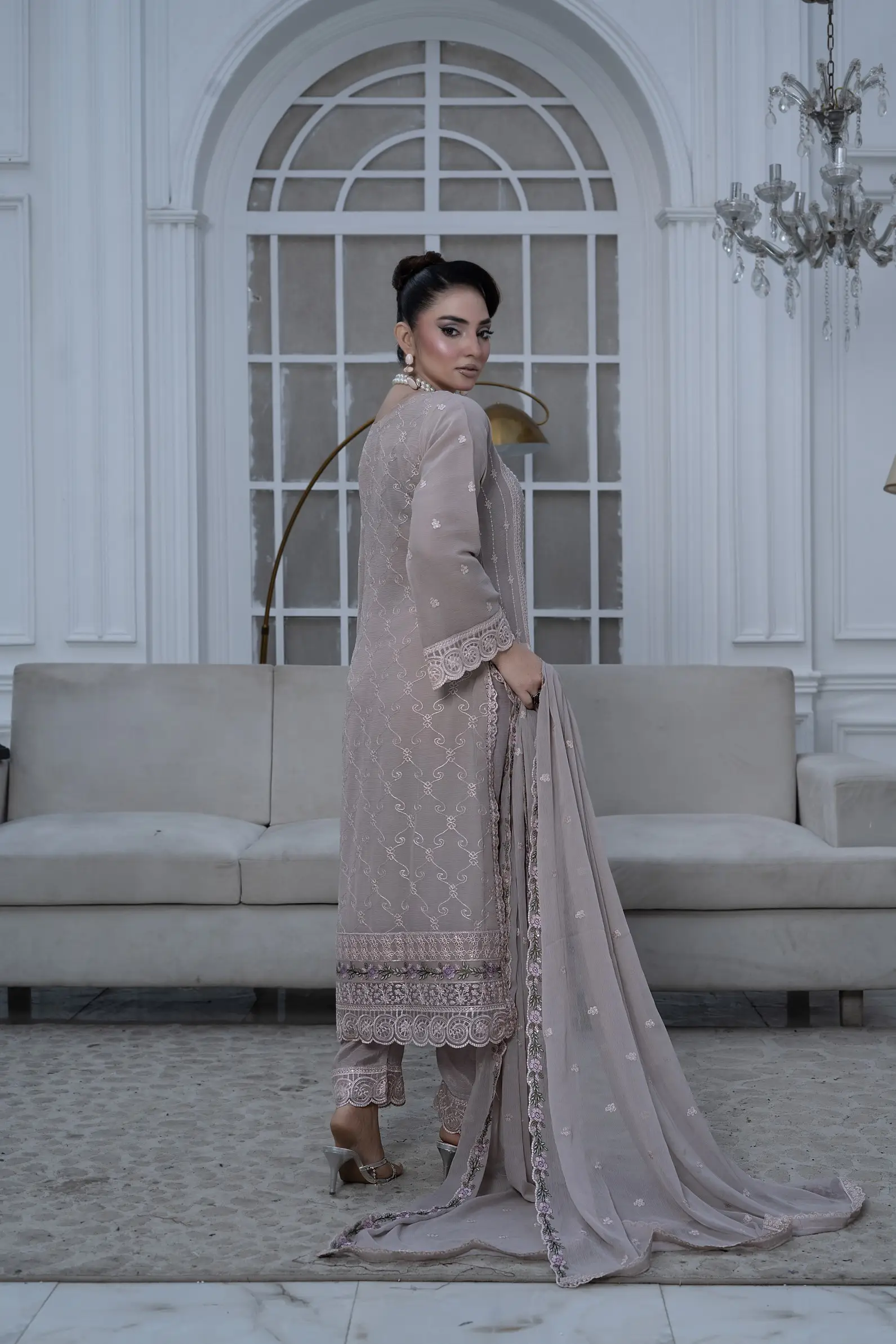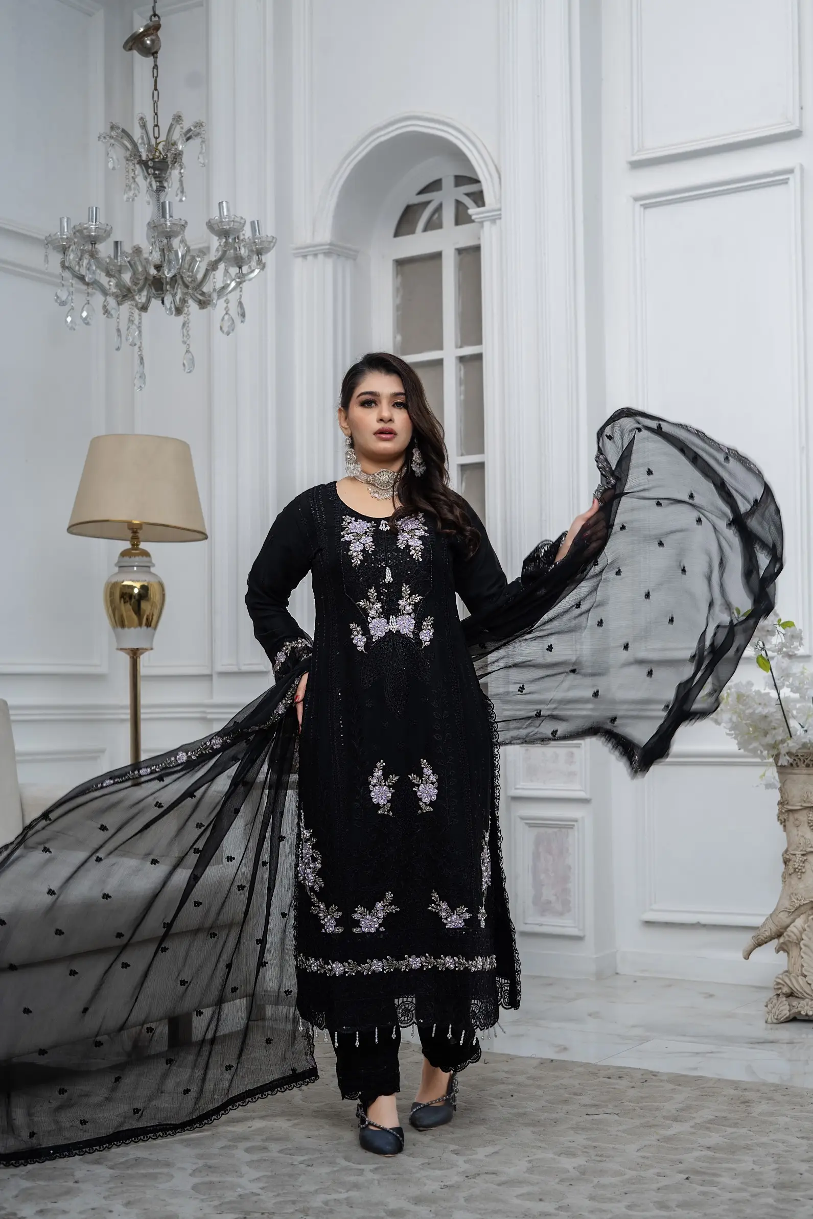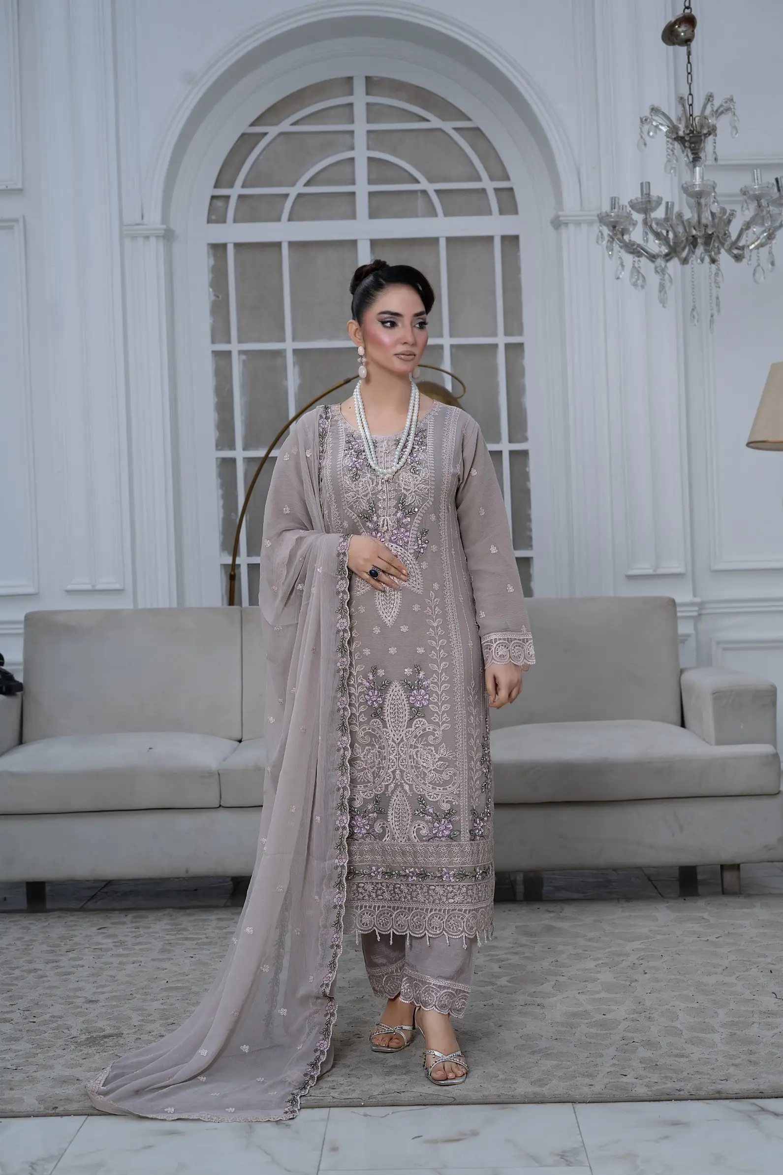 Design S-370 is a refined women-only shafoon suit featuring a soft flow, graceful drape, and premium stitching—perfect for elegant everyday wear and boutique displays.