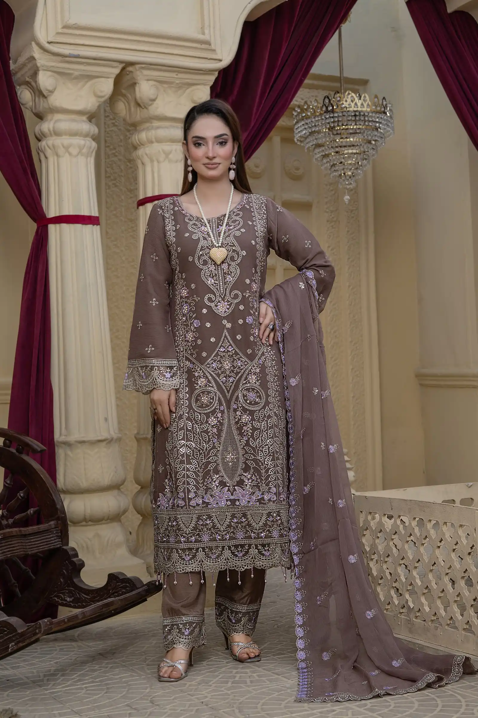 Design S365 is a beautifully crafted Shafoon stitched suit that blends softness, elegance, and comfort. Designed for modern women, this premium outfit is ideal for boutiques seeking refined seasonal fashion with guaranteed quality and style.