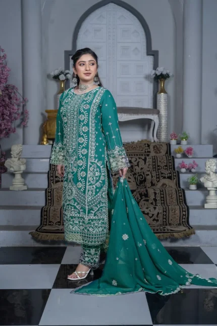 Design S365 is a beautifully crafted  Shafoon stitched suit that blends softness, elegance, and comfort. Designed for modern women, this premium outfit is ideal for boutiques seeking refined seasonal fashion with guaranteed quality and style.