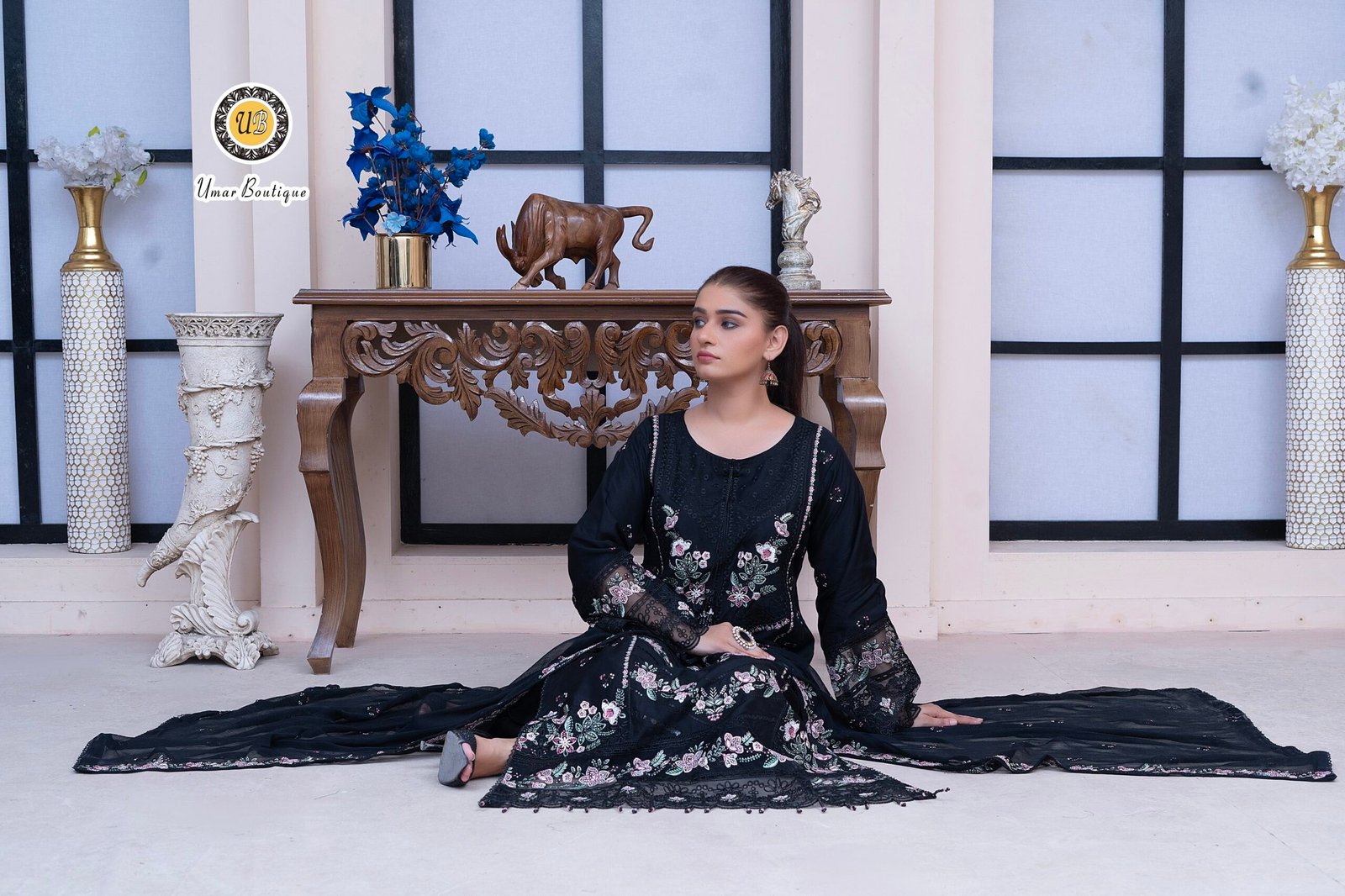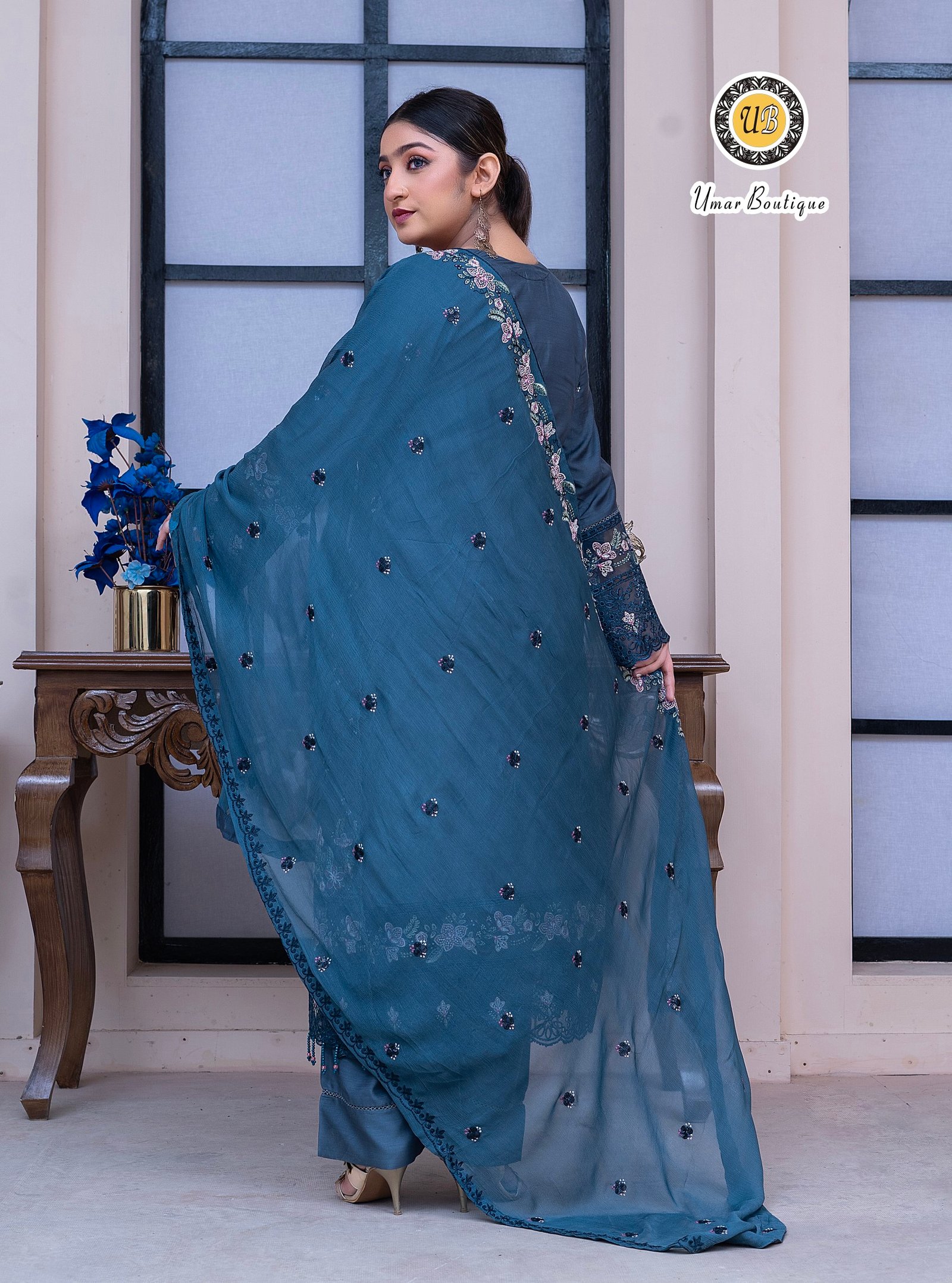 Step into modern sophistication with Viscose V45. Made from high-quality viscose, this 3-piece ensemble includes a long 45+ inch shirt, coordinating plazo, and a lightweight viscose dupatta. Designed for chic, everyday styling with a smooth, luxurious finish.